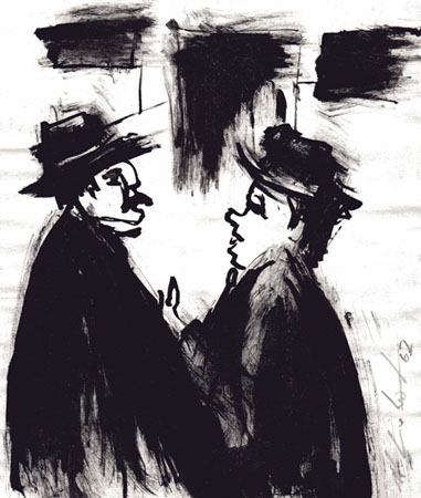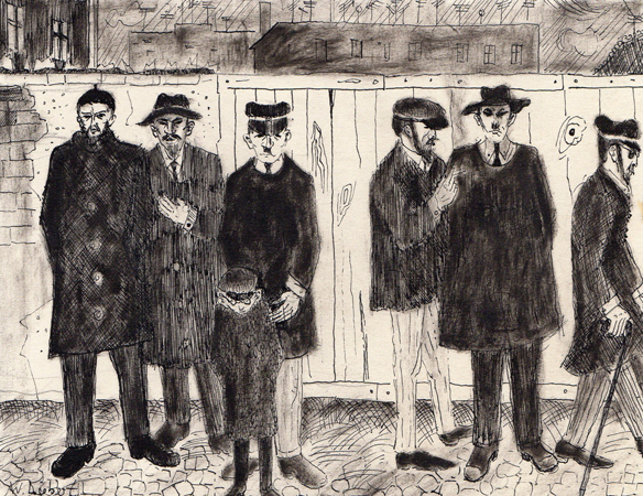 Strassenpassanten (Stettin) 1964, lavierte Federzeichnung, 14,5 x 18 cm