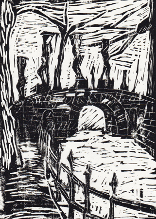 Die Breite Brücke (Potsdam) 1963, Linolschnitt, 20,5 x 14,5 cm