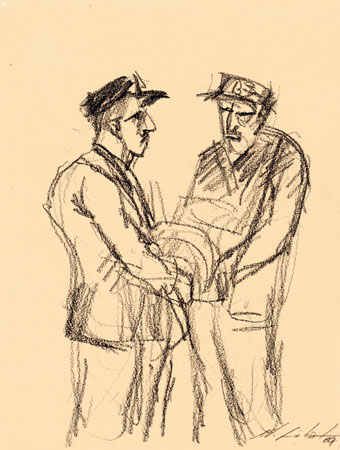 Zeitungsverkäufer (Berlin) 1964, Kohle auf Papier, 27 x 20 cm