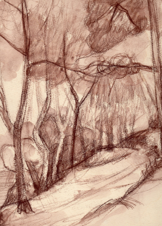 Am Caputher See 1965, lavierte Sepiazeichnung auf Papier, 36 x 26 cm
