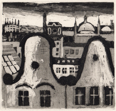 Blick über das Holländische Viertel (Potsdam) 1966, Aquatinta, 17 x 19 cm