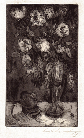 Strauß in Jugendstilvase 1967, Aquatinta, 18 x 10 cm