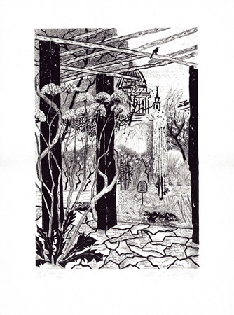 Dorfstrasse (Golm) 1967, Radierung, 12 x 17 cm