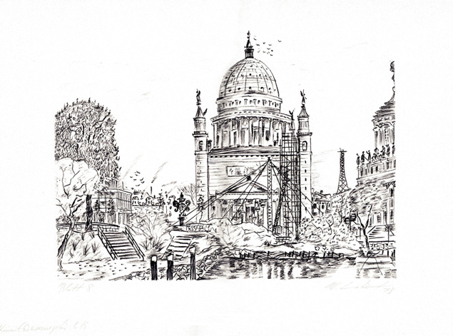 Die Rotunde (Odessa) 1981, Farblinolschnitt, 15 x 12 cm