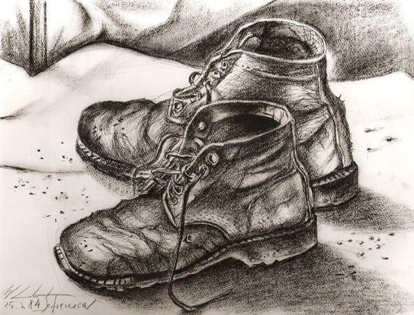 Arbeitsschuhe (Jefremow) 1984, Kreidezeichnung auf Papier