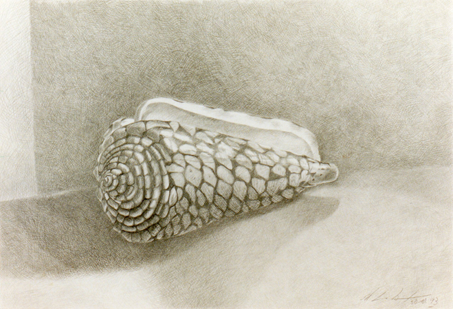 Kegelmuschel 1993, Bleistift auf Zeichenkarton, 40 x 30 cm