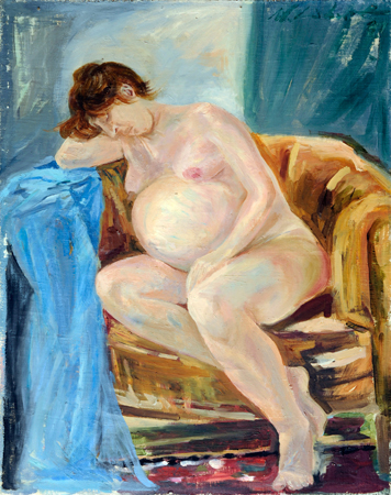 Olga - Alexander stillend 1982, Öl auf Leinwand, 145 x 120 cm