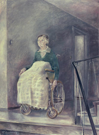 Frau im Rollstuhl 1982, Öl auf Leinwand, 80 x 100 cm