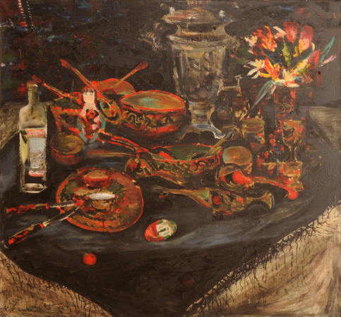 Russisches Stilleben 1982, Mischtechnik auf Leinwand, 82 x 85 cm