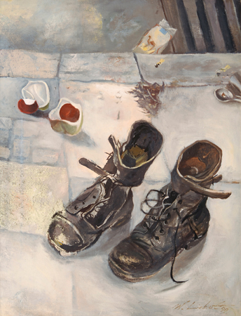 Meine Arbeitsschuhe 1990, Mischtechnik auf Leinwand, 85 x 65 cm