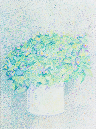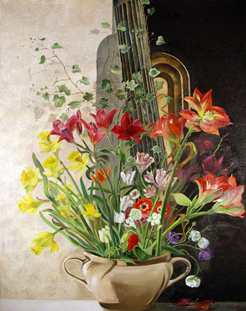 Frühlingsblumen im Porzellangefäß 1993, Öl auf Holztafel, 30 x 40 cm