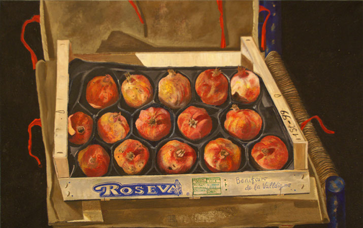 Granatapfelkiste 2001, Mischtechnik auf Leinwand, 80 x 110 cm