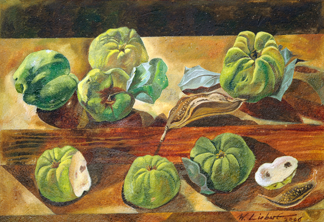 Quittenstilleben 2006, Mischtechnik auf Leinwand, 50 x 70 cm