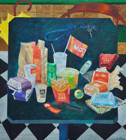 Mc Donalds Menü 2009, Mischtechnik auf Leinwand, 110 x 100 cm