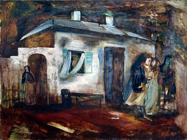 Winterabend (Brody) 1992, Mischtechnik auf Leinwand, 100 x 130 cm