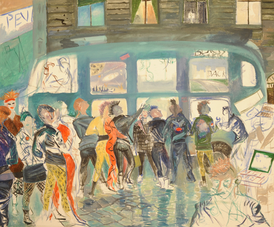 Punker vor Spielautomatenbus (Opole) 1984, Öl auf Leinwand, 80 x 100 cm