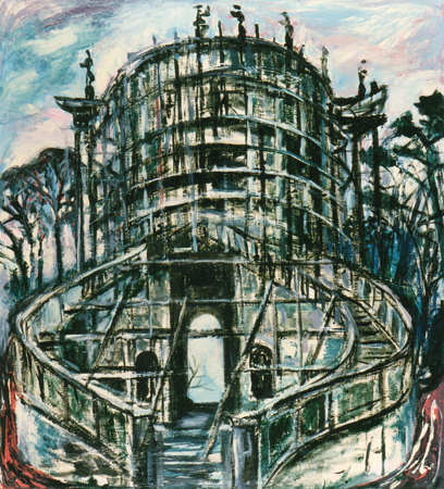 Die Ruine des Belvedere auf dem Klausberg 1990, Mischtechnik auf Leinwand, 120 x 110 cm