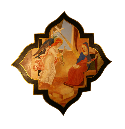 Verkündigung - Kopie nach Botticelli Schule 1995, Mischtechnik auf Leinwand/Holz, 63 x 63 cm