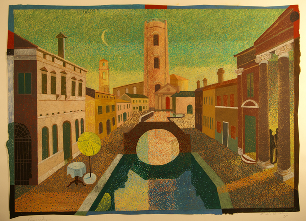 Kanal in Comacchio 1996, Eitempera auf Papier, 70 x 98 cm