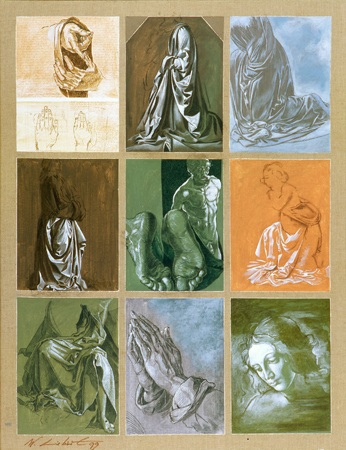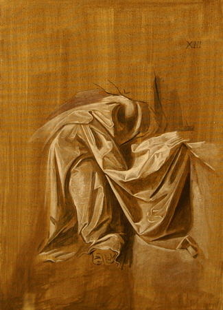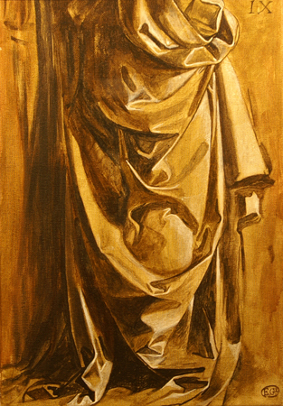 Faltenwurf - Studie nach Leonardo da Vinci 2000, Mischtechnik auf Leinwand