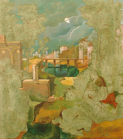 Das Gewitter - Kopie nach Giorgione 2002, Mischtechnik auf Leinwand, 90 x 80 cm
