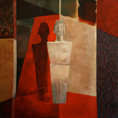 Kultfigur (Gozo) 2006, Mischtechnik auf Leinwand, 100 x 100 cm