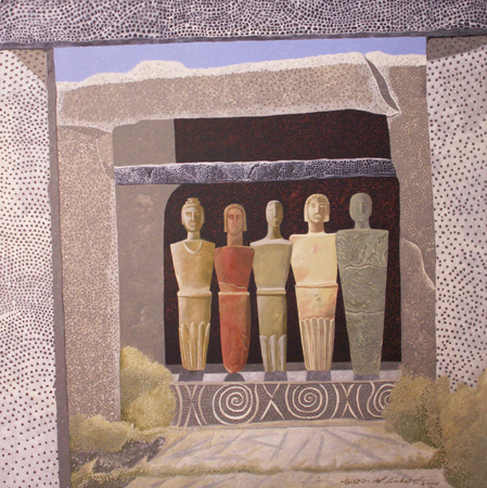 Tempelfiguren (Gozo) 2006, Mischtechnik auf Leinwand, 100 x 100 cm