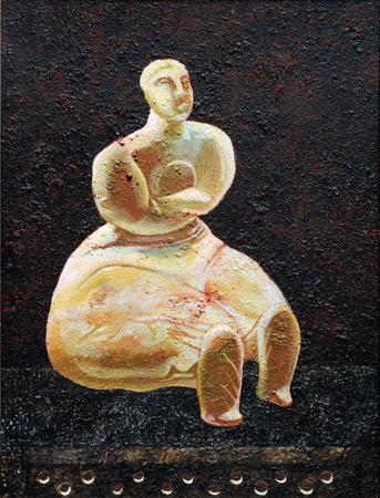Archaische Kultfigur 2007, Mischtechnik auf Malplatte, 40 x 30 cm