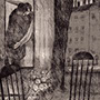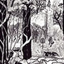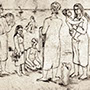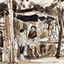 Bernhard und Anneliese beim Spinnen (Lindenberg) 1962, Federzeichnung auf Papier, 20 x 20 cm