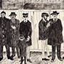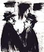 Strassenpassanten (Stettin) 1964, lavierte Federzeichnung, 14,5 x 18 cm