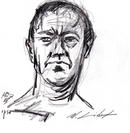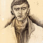 Selbstbildnis 1988, Kreidezeichnung auf Papier, 21 x 21 cm
