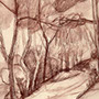 Am Caputher See 1965, lavierte Sepiazeichnung auf Papier, 36 x 26 cm