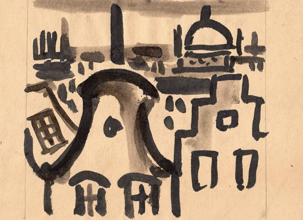 Holländisches Viertel (Potsdam) 1965, Pinselzeichnung auf Papier, 18 x 18 cm