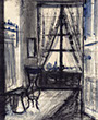 Meine Küche (Berlin) 1966, lavierte Kohlezeichnung, 30 x 22 cm