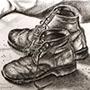 Arbeitsschuhe (Jefremow) 1984, Kreidezeichnung auf Papier
