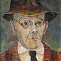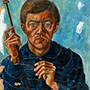 Selbstbildnis mit Malstock 1963, Öl auf Malpappe, 55 x 40 cm