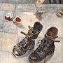 Meine Arbeitsschuhe 1990, Mischtechnik auf Leinwand, 85 x 65 cm
