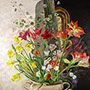 Frühlingsblumen im Porzellangefäß 1993, Öl auf Holztafel, 30 x 40 cm
