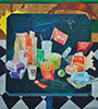 Russisches Stilleben 1982, Mischtechnik auf Leinwand, 82 x 85 cm
