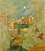 Blick auf die Ruine des Belvedere auf dem Klausberg 1991, Öl auf Leinwand, 120 x 100 cm